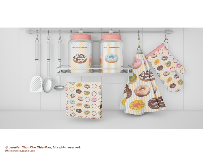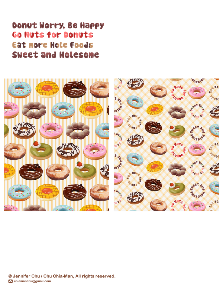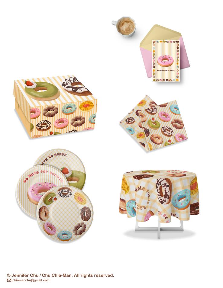 Donuts is a sweet and holesome art collection great for gift bags and greeting cards, party supplies, or kitchen decor. Available for licensing now.